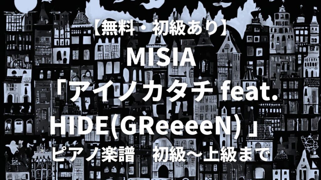 【無料・初級あり】MISIA「アイノカタチ feat. HIDE(GReeeeN) 」ピアノ楽譜 初級〜中級まで幅広くご紹介MISIA「アイノカタチ feat. HIDE(GReeeeN) 」のピアノ楽譜の無料楽譜や、難易度別… -